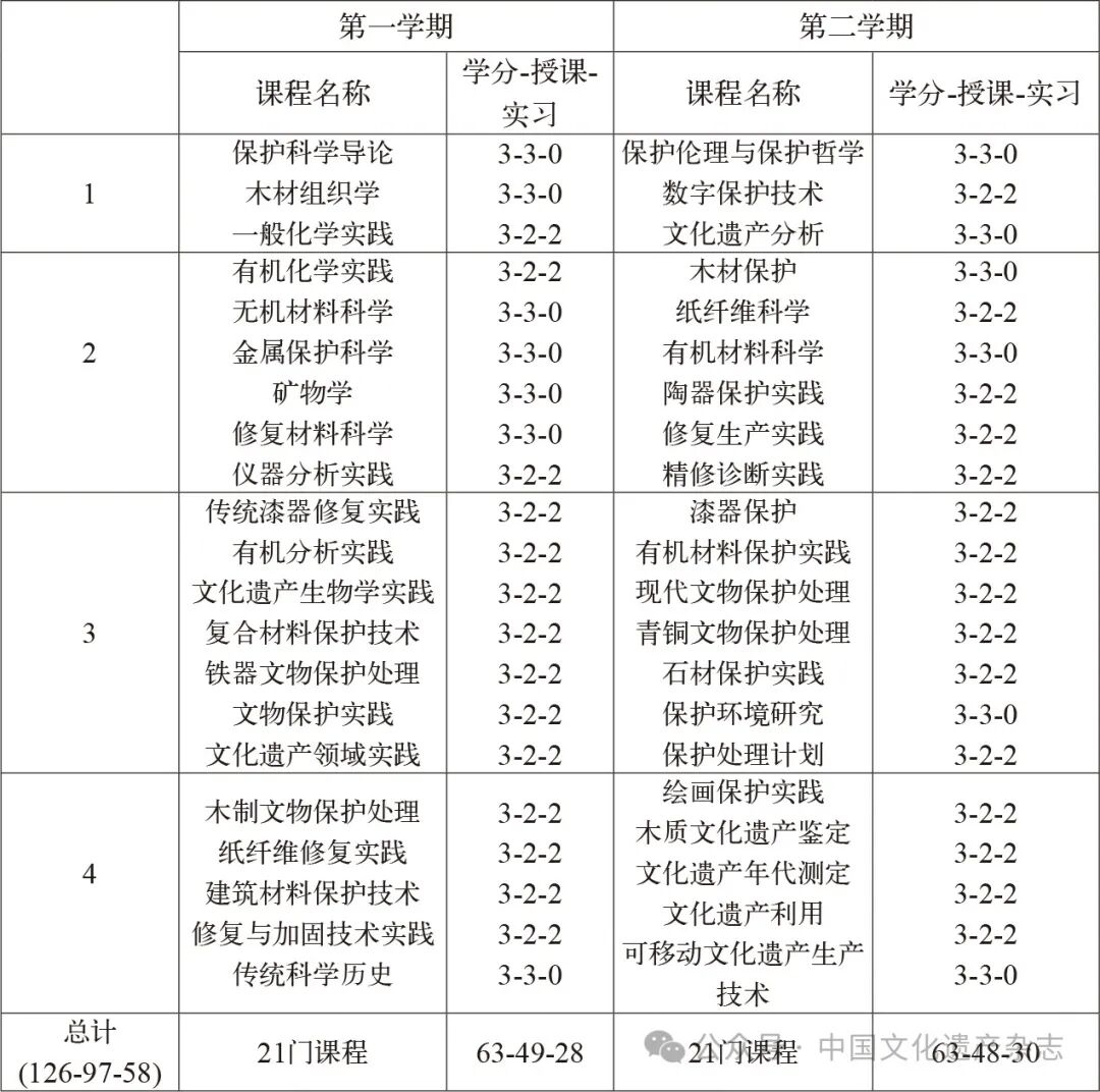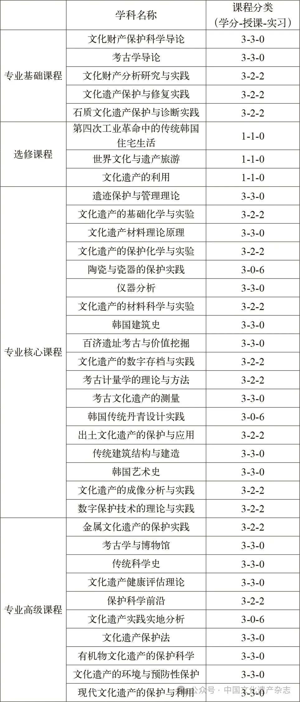 表2 韩国国立文化遗产大学文化遗产保护科学系课程设置