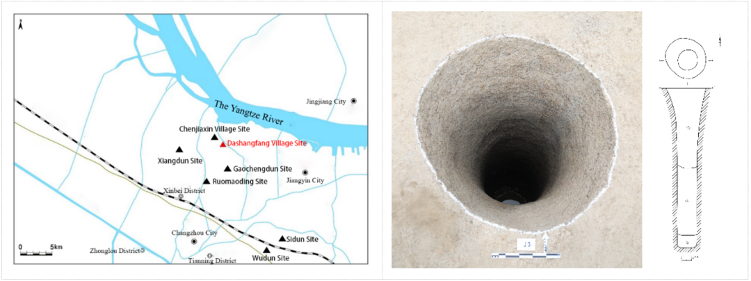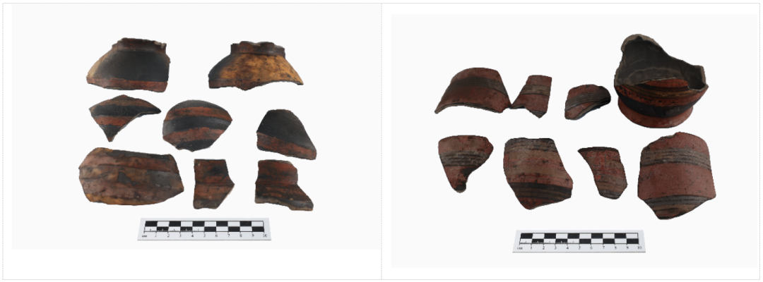 2023年,江苏省常州市大上方村遗址崧泽文化水井J3(见图1)中出土了数件精美的黑皮陶器、漆绘陶器及夹砂陶器。本研究使用超景深三维视频显微镜、扫描电子显微镜及能谱仪、拉曼光谱仪、显微红外光谱仪、超高效液相色谱质谱仪、热裂解气相色谱质谱仪对两件漆绘陶器样品(图2)的材料和工艺进行了科学分析。结果表明,这两件漆绘陶均是在陶器表面使用大漆调和红色及黄色颜料绘制两层结构,使用的材料包括:铁红、朱砂、黄色染料。出人意料的是,调和颜料所用的大漆为laccol(来自于越南漆树Rhus succedanea)而不是传统的中国漆(来自于Rhus vernicifera)。该结果为研究亚洲漆种起源提供了重要实例,laccol在新石器时期漆绘陶上的使用表明了中国大陆也可能是laccol漆种的起源地之一。目前该成果已发表于Journal of archaeological science第173卷。