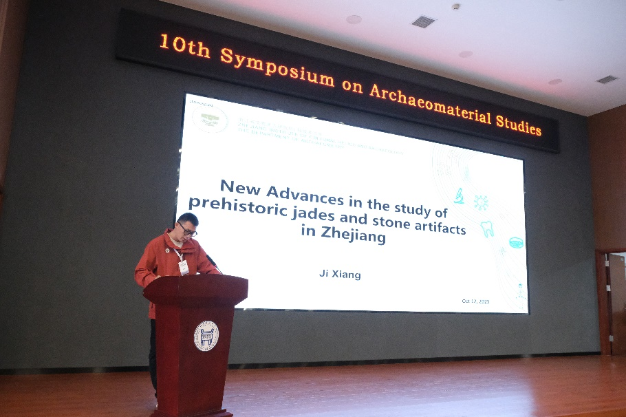 浙江省文物考古研究所姬翔老师以New Advances in the study of prehistoric jades and stone artifacts in Zhejiang为题,系统介绍了浙江省小黄山、良渚遗址群、茅山、西曹墩、曹湾山五处史前遗址出土玉器与石器的整理与材质鉴定结果。研究显示,小黄山遗址(上山和跨湖桥文化)以磨石、磨盘和石锤为主,材质主要为本地广泛分布的玄武岩、燧石及火山碎屑岩;良渚遗址群(良渚文化)鉴定石器1457件,以石锛、石钺、石镞为主,石料包括泥岩、硅质岩、斑点角岩等,经地质调查,硅质岩可能来自100公里外的河桥镇;茅山遗址(良渚文化)石锛主要采用硅质岩与粉砂岩,纺轮则多使用叶蜡石化凝灰岩,该类原料见于钱塘江以南的萧山地区;西曹墩遗址(良渚文化)出土石器671件,其中74.5%为磨石、石片及坯料,初步判定为石器加工作坊,其石料以砂岩、粉砂岩、斑点角岩为主,在本地资源匮乏背景下应来自外部输入,可能与苏州五峰北遗址的石器加工作坊存在关联;曹湾山遗址(好川文化)石器以本地泥岩、凝灰岩为主,玉器多用遗址附近资源丰富的叶蜡石。最后,姬翔总结指出,上山文化与好川文化石器多为就地取材,而良渚文化诸遗址则展现出明显的远距离流通与资源调配体系。这一差异既受自然资源分布影响,也反映了良渚社会较高的经济发展水平与以良渚古城为核心,依托水网建立的跨区域交换网络,其中茅山与西曹墩遗址很可能发挥着中转枢纽的作用。