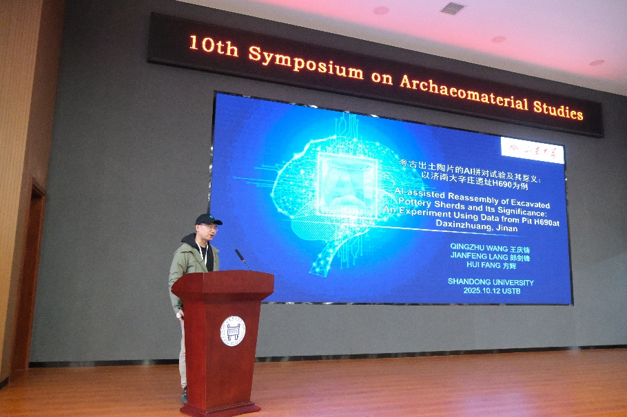 山东大学考古学院王庆铸副研究员进行了题为“考古出土陶片的AI拼对实验及其意义:以济南大辛庄遗址H690为例”的报告。首先,王老师强调了陶器在考古学研究中的重要性。陶器是进行考古类型学分析的重要遗物类型,将陶器类型学分析与地层学结合,可以确定陶器的相对年代,在此基础上建立考古学文化序列。此外,考古学研究从建立考古学文化序列转向研究古代社会之后,陶器作为出土数量最多的遗物,考古学家对陶器的研究也开始转向陶器的功能、制作工艺、生产组织模式等问题,进而还原先民的社会生活。将AI应用到陶器拼对中,增加了可匹配陶器碎片的数量,有利于利用陶器进行考古学研究。同时,对可拼对陶片的出土位置进行分析,为完善特征功能分区、建立共时性平面和构建聚落模式的研究提供了新材料,并推动了对人类行为和遗址埋藏过程的复原。最后,王老师以大辛庄遗址H690为例进一步介绍了考古出土陶片AI拼对实验,并希望大家一起参与到其团队在kaggle平台上发布的AI陶片拼对挑战之中。