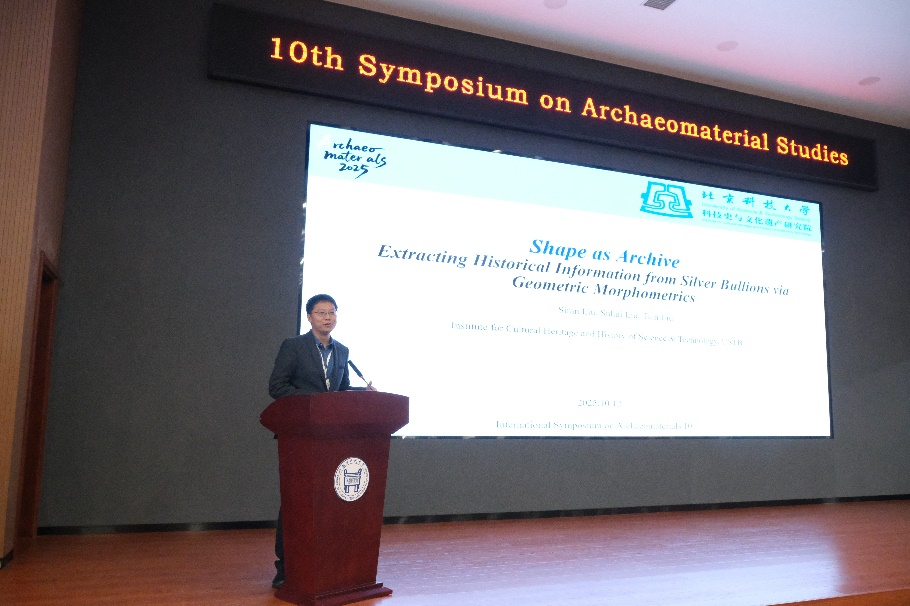 北京科技大学科技史与文化遗产研究院的刘思然教授作了题为Shape as Archive: Extracting Historical Information from Silver Bullions via Geometric Morphometrics的报告。他首先梳理了中国古代银锭研究的历史和现状,指出银锭作为一种记录了丰富税收和政府财政信息的书写载体,其铭文历来受到史学界的重视。与此相反,对于其外观形态的考古学观察则相对薄弱,目前仅有少量学者对大尺度上的银锭形态演化进行过梳理。造成这一问题的重要原因是银锭的形态在某一时间阶段内相对稳定,很难通过类型学方法从中提取有效信息。本研究则采用基于椭圆傅里叶变换(EFA)的几何形态学方法对银锭的形态进行定量分析,以期获取其蕴藏在铭文以外的关键历史信息。报告使用两个案例对这一研究设想进行了说明。第一个案例中,团队系统收集了目前已发表的南宋银锭正射影像图,其EFA分析结果显示银锭的轮廓形态变化与其重量规格、生产地点等具有明显的相关性,反映了该时期银锭生产模具与生产背景间的关联关系。唯一的例外是一类铭有出门税字样的银锭,无论重量或生产机构如何变化,其轮廓形态均保持了高度一致,反映了这类银锭特殊的生产背景。结合文献证据与北宋时期类似银锭的对比研究推测这类银锭的生产可能与宋金边境区域的商贸活动有关。第二个案例分析了明代晚期四川地区银锭的形态特征。通过对EFA获取的主成分因子的聚类分析可以发现,即使在一个地区内部的不同县之间银锭也具有细微的形态差异,而导致这种差异的主要因素可能是明代晚期的跨区域交通网络。