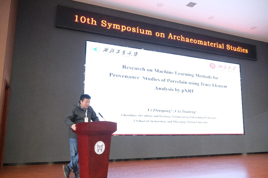 北京大学考古文博学院崔剑锋教授作了题为“Research on Machine Learning Methods for Provenance Studies of Porcelain using Trace Element Analysis by pXRF”的报告。他首先系统回顾了其团队自2012年起在国内率先应用便携式XRF技术进行古陶瓷产源研究的历程,指出该技术凭借快速、无损、原位和数据稳定的优势,为大规模建立窑口数据库及考古出土物、馆藏珍品的溯源与辨伪提供了可能。随着数据量与窑口数量的激增,传统的主成分分析等线性降维方法因数据重叠效应加剧而显不足,研究团队转而采用UMAP等非线性方法及随机森林模型,并遵循“建模-验证-优化-应用”的路径不断改进窑口判别方法。基于包含51个窑口的6421个样本的数据库所构建的随机森林模型在窑区层面分类准确率高达约97%,但因样本量不平衡,召回率约为90%。验证发现,判别不准的窑口主要原因为窑口之间地理位置极为接近(如景德镇窑与湖田窑、钧窑与东沟窑),推测可能与原料同源有关。模型分析进一步揭示了关键判别元素可分为指示地质背景的Zr/Rb/Ti/Th与反映工艺配方的Fe/K/Ca两类,同时证实引入釉色特征反会降低判别精度。针对龙泉窑区的深入案例表明,窑口间距离和样本量是影响判别准确率的关键因素,通过合并邻近小窑口或将判别选项增至前三名,能显著优化模型性能至近100%的准确率。最终,模型在广州地区考古出土陶瓷的实证应用中,成功揭示了其以本地西村窑为主导,并融合福建、越窑、景德镇等多地窑口的复杂供应格局与跨区域流通模式,验证了模型的有效性与实用性。