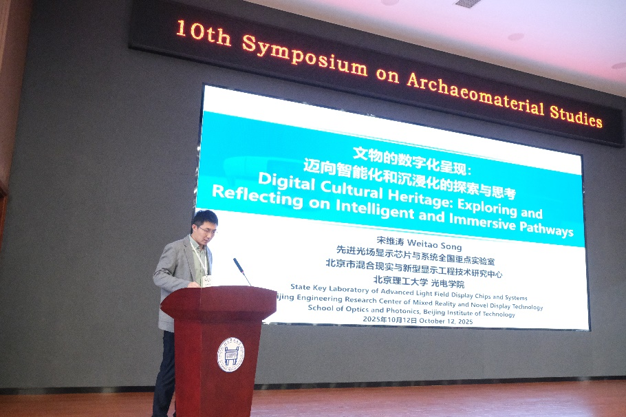 北京理工大学光电学院宋维涛教授在“文物的数字化呈现:迈向智能化和沉浸化的探索与思考”的报告中,系统阐述了文物数字化、智能化与沉浸化发展的最新进展与未来方向。宋教授指出,文物数字化是智能化与沉浸化的基础,其核心在于将文物的物理信息精准转化为可复用的数字形态,为后续的AI分析与展示提供支撑。在文物虚拟修复方面,团队以三星堆典型青铜器为案例,展示了结合三维扫描、数字矫正与虚拟拼接的综合修复方案,实现了残损文物的高精度数字复原。其中,三星堆青铜罍、方尊、面具等复杂器物在虚拟环境中成功重构,为理解古代铸造技术与造型逻辑提供了新视角。在智能化研究方面,宋教授展示了基于深度学习的陶范SEM图像中矿物颗粒的智能分割技术,突破了传统方法的效率与识别瓶颈。在沉浸化展示环节,他以法海寺壁画再现为例,介绍了VR、AR与裸眼3D等技术在文物展示中的应用,推动观众从“旁观者”转变为“亲历者”,实现文化遗产的沉浸式体验。最后,宋教授提出了未来构想:建设标准化文物知识库、运用AIGC实现知识沉浸,并开发垂域大模型以实现前端展示与后端数据的实时贯通,推动文物保护与传播进入智能共情的新阶段。