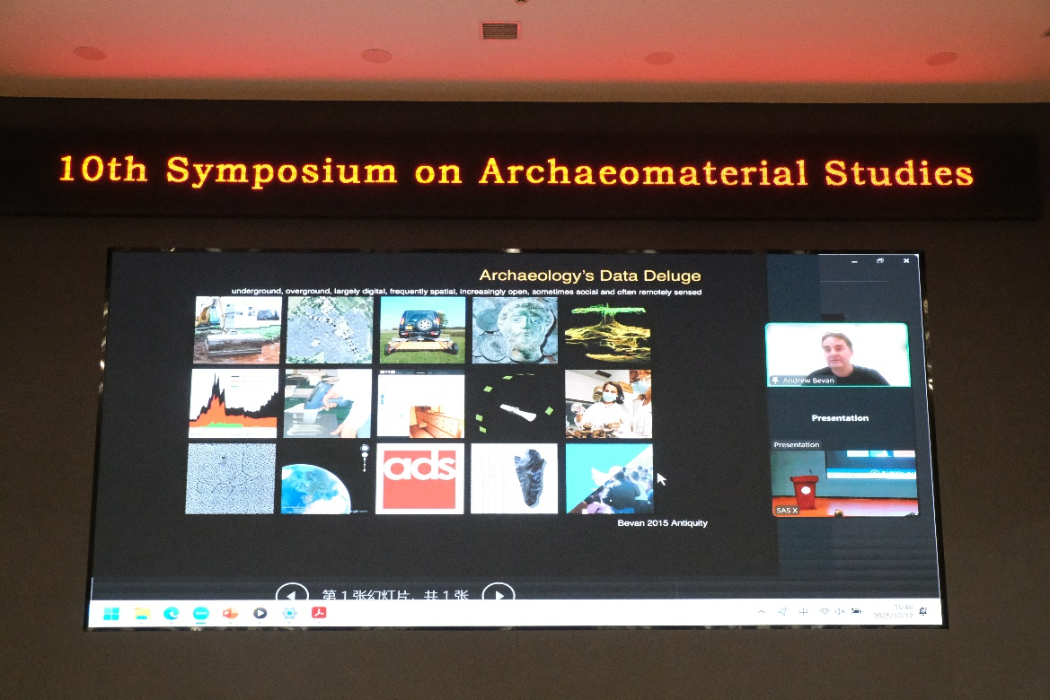 伦敦大学学院的Andrew Bevan教授作线上主旨演讲,题为Making Materials Matter. Some Current Frontiers in Archaeological Data Science。他首先指出考古学正面临 “数据洪流” 挑战,数据呈现地下与地上并存、高度数字化、空间属性突出、逐步开放化等特征,还涉及社会属性与遥感技术应用,涵盖多样研究场景,同时引出当前学界的核心争议,包括开放研究与封闭研究、大数据与小数据、自动化与人类知识、简单与复杂模拟、数据清洁与数据插补、纯粹预测与因果/过程推断、科研资源集中与分散七大维度的对立与平衡。在具体研究方向上,报告以生动的案例加以讲授,介绍了当前的几个较为重要的研究案例与研究趋势:一是跨工艺与多材料综合研究,以对兵马俑的研究为例,以弩箭、青铜器、陶俑(如兵马俑、杂技俑)等为研究对象,分析生产批次、组装流程、探讨陶土成分与砖、夯土等建筑材料关联;二是高通量技术与机器学习的融合应用,例如基于无人机高分辨率影像和随机森林算法实现田野调查结果的数据化,且可通过多轮迭代提升精度;第三是对于混合材料和复杂数据的解析,借助贝叶斯混合模型、流形学习等方法,解决古代青铜器铅同位素混合历史解析等问题;围绕产地溯源与物质流动研究,使用层级细分、多特征产地概率模型等分析工具;对美国西南部陶器相似性网络研究通过遗址分布数据、器物发现点信息,实现从空间分布模式到物质流动过程的转化,全面展现了数据科学为考古材料研究带来的方法论革新与跨学科融合机遇。