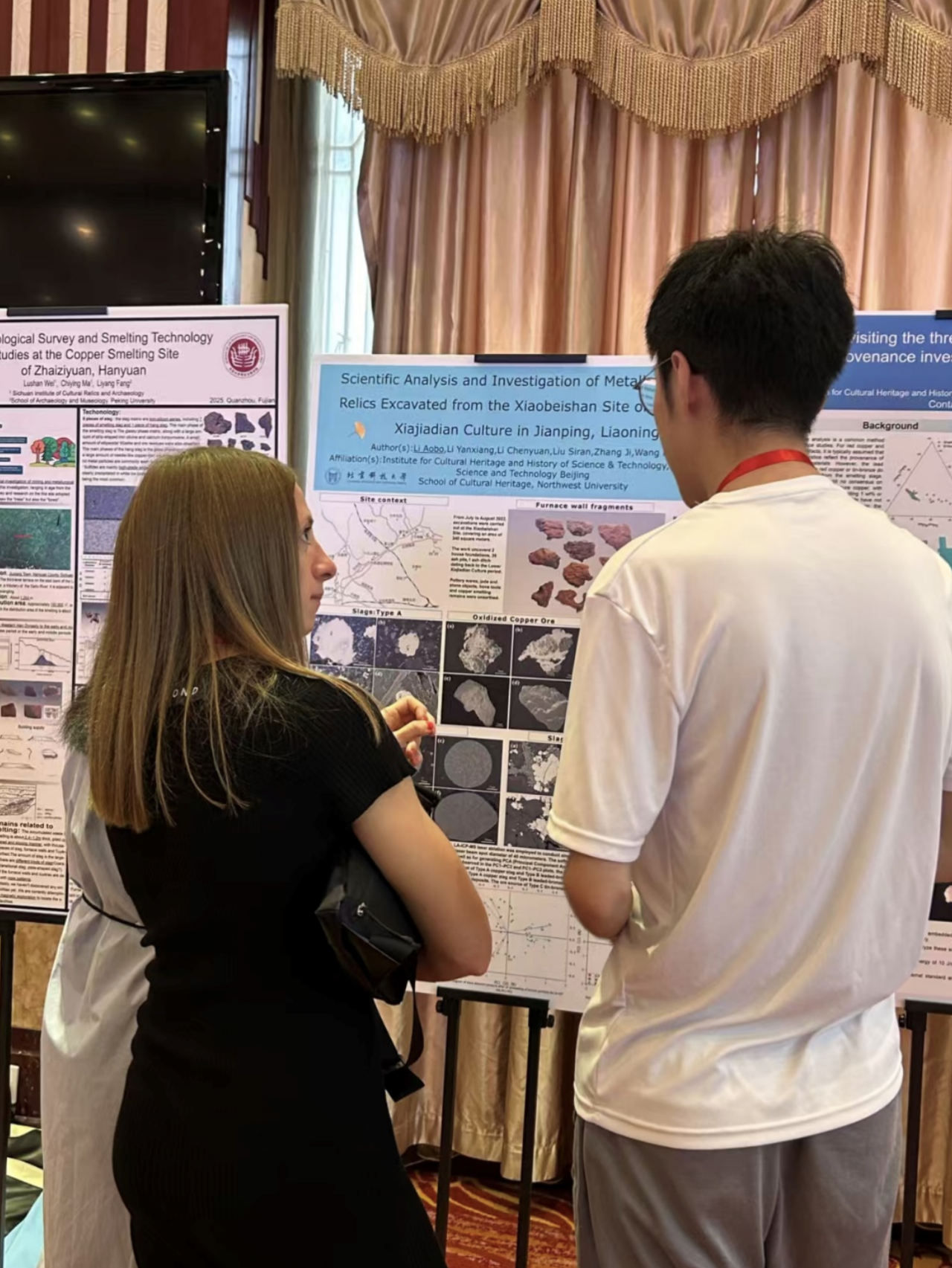 李奥博博士研究生海报主题为《Scientific Analysis and Investigation of Metallurgy-related Relics Excavated from the Xiaobeishan Site of the Lower Xiajiadian Culture in Jianping, Liaoning》,通过对辽宁建平小北山夏家店下层文化遗址出土的炉壁残块、炉渣、矿石以及金属块的科学分析,指出该遗址存在至少三种矿冶技术面貌:冶炼红铜、冶炼铅青铜及冶炼锡青铜。此外,小北山遗址还出土了氧化铜矿石、纯铜金属块和铅锡金属块。该研究丰富了夏家店下层文化铜冶金技术的细节、特点及生产面貌。