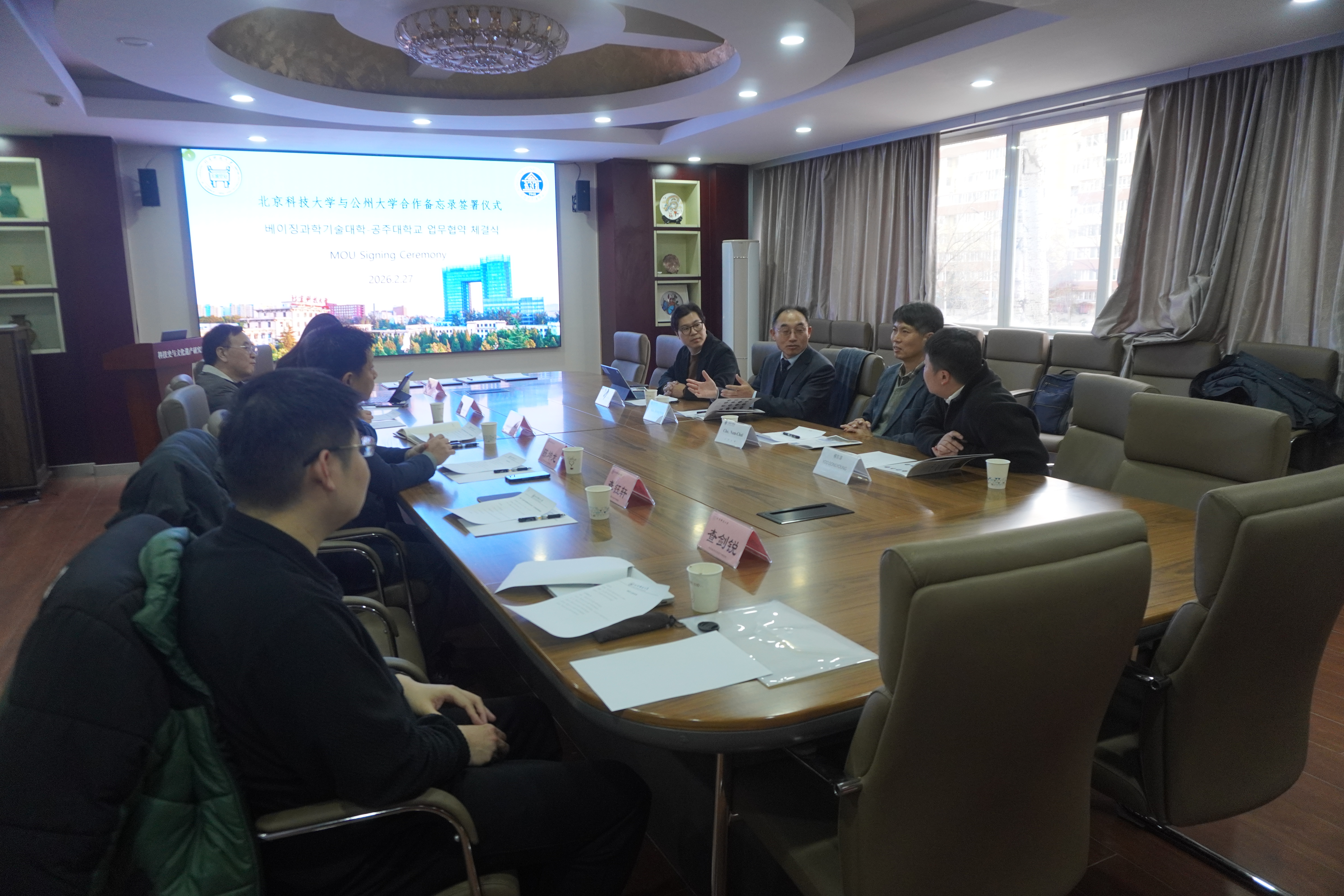 2月27日上午,韩国公州大学文化遗产保存科学系系主任徐正锡教授,以及赵南哲教授、赵英勋教授一行访问了北京科技大学科技史与文化遗产研究院,出席“中韩文化遗产保护研究生学术论坛”合作协议签署座谈会。会议在逸夫楼科技馆206会议室举行,由研究院院长潜伟教授主持。研究院副院长陈坤龙教授、文化遗产保护研究所所长郭宏教授,以及龚钰轩副教授、高仁姬副教授等参加了座谈。